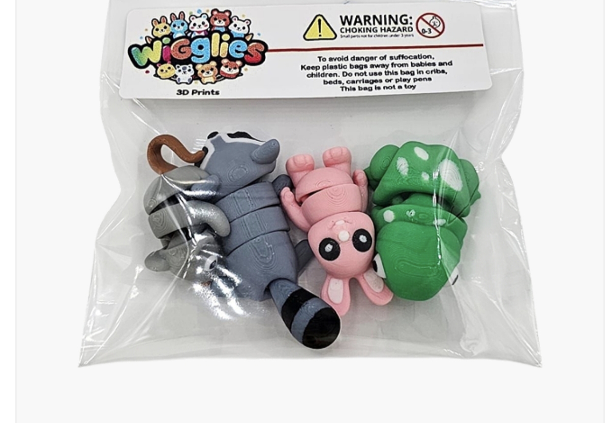 Wigglies are Mini 3D Printed Articulated toys that range from sizes of 3cm to 7cm depending on the animal.